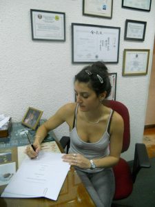 Carola firmando